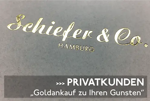 Schiefer & Co. ist die älteste norddeutsche Edelmetall-Scheideanstalt nördlich der Elbe und seit 1923 traditionell engagierter Partner der innovativen Innung der Hamburger Gold- und Silberschmiede und des Deutschen Gold- und Silberschmiedehandwerks. Wir bieten diesem sinnlichen Handwerk und der Kunst den vollständigen Wertstoffkreislauf der Edelmetalle Gold, Silber, Platin und Palladium, betreiben eine leistungsfähige Schmuckgalvanik und handeln mit generischen Edelmetallen und Legierungen aus Nord-Finnischem Waschgold.