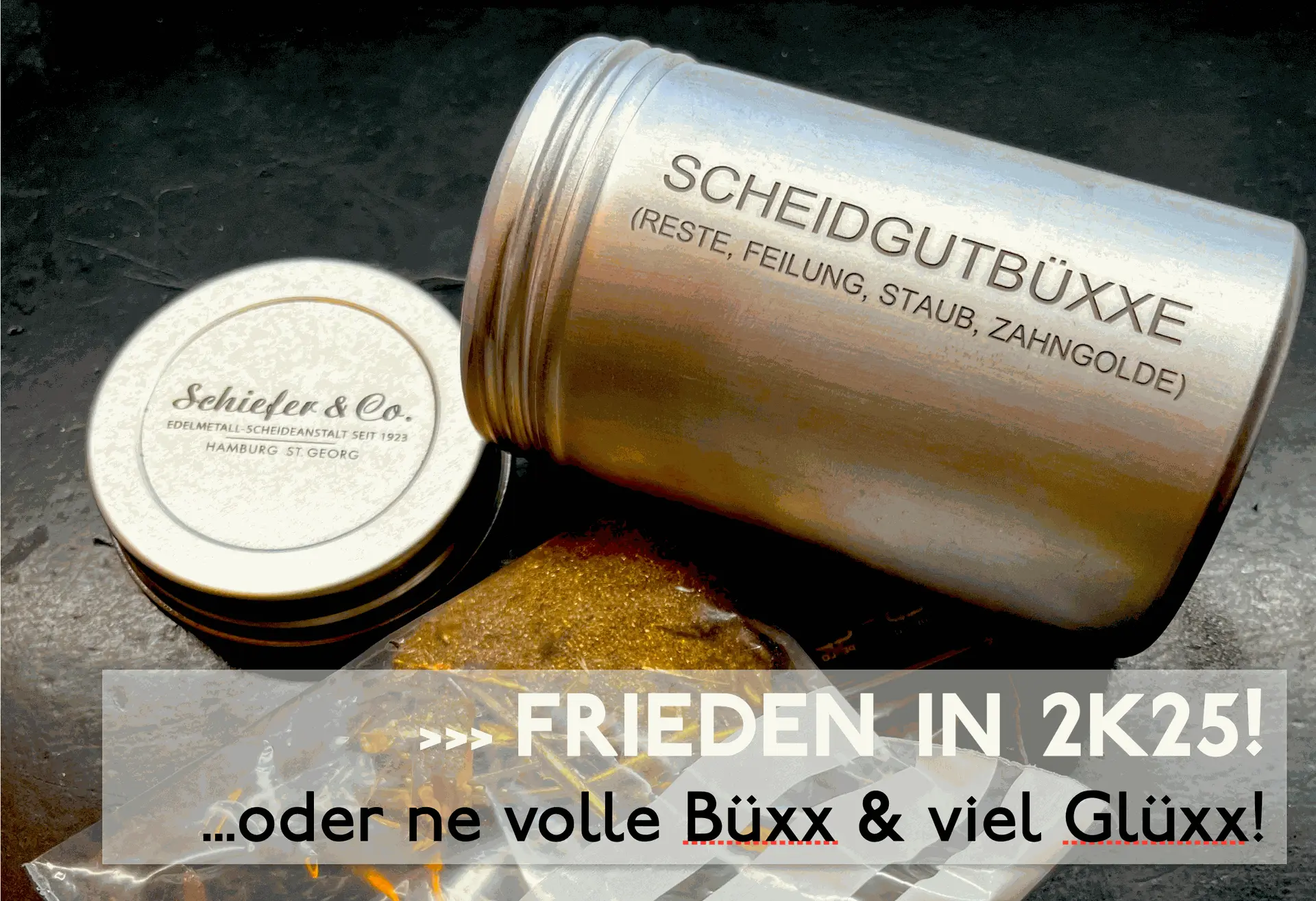 Mit effizienter Atemluft-Entkeimungstechnik im Kontor und ohne Angst vor Infektionen, empfehlen wir uns also weiter als sicher aufgestellte Spezialisten für kleine, individuelle und dringliche Aufträge im Bereich der Edelmetall-Halbzeug-Herstellung und des Edelmetall-Handels. Wir bleiben die Institution, die man empfiehlt, und bieten eine gründlich seriöse Scheidgutausarbeitung (immer schon auch für Privatkunden und Endverbraucher). Wir empfehlen uns Ihnen auch für einen transparenten Verkauf alter Edelmetalle bei uns am Tresen, Stück für Stück vor Ihren Augen, den traditionellen “Goldankauf”!