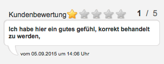 Wir haben fast nur sehr positive Bewertungen erhalten, aber wir zeigen hier ein paar unserer „schlechtesten“ online-Bewertungen ( eKomi-1-Stern = mangelhaft) von echten Kunden über die eKomi-Bewertungs-App.