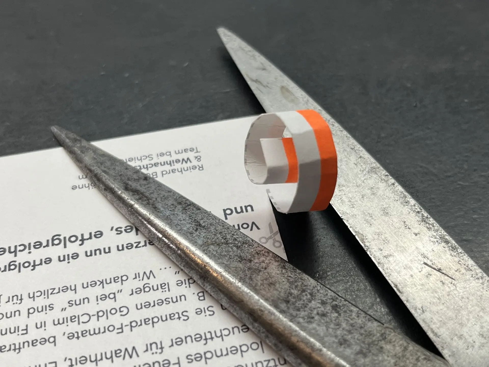 Jetzt kommt ein scharfes Messer oder auch der Schenkel einer Schere zum Einsatz... Schaben Sie - von sich weg - am Zündelzwerg und nach einigen Versuchen, werden Sie Funkenflug beobachten... Diese Funken gilt es nun nur noch in die Nähe des Knäuels zu dirigieren und wenn Sie dann noch sämtliche anderen brennbaren Komponenten des Weihnachtspräsents um das Knäuel drapiert haben, können Sie mit hoher Wahrscheinlichkeit an der geweckten Flamme auch eine Kerze entzünden oder sich an der Reflektion eines respektablen Feuers aus Tanne, Stroh und Papier in grünen Scherben erfreuen.