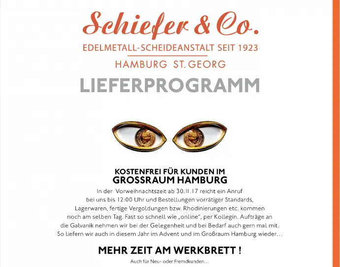 Bevor aber “Verarbeitungsreste” aufzuarbeiten sind, muss es erstmal eine fruchtbare und nachhaltig erfolgreiche Wertschöpfung gegeben haben. Die Rohstoffe und Rohmaterial, Halbzeuge aus Edelmetallen und maßgeschneiderte Sonderanfertigungen für die Schmuckherstellung sind der eigentliche Schmierstoff unserer Wertschöpfungskette an deren Anfang und Ende die Inspiration und das handwerkliche Geschick der KünstlerInnen und Künstler an den Werkbrettern stehen…