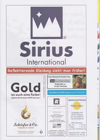 Sollten Sie, lieber Eltern, das Buch mit einer Anzeige Ihres Unternehmens ebenfalls unterstützen wollen, dann geben wir Ihnen gern den Kontakt zum NVK Verlag, der dieses Malbuch schon über viele Ausgaben hinweg hochwertig publiziert. Und Ihr, liebe Kinder, wenn Ihr mal mit Gold oder Silber malen möchtet, dann sprecht uns einfach an. Holt Euch, holt Euch mit Euren Eltern, bei uns je einen silbernen und einen goldenen Buntstift, um Euren Farbkasten zu vervollständigen…