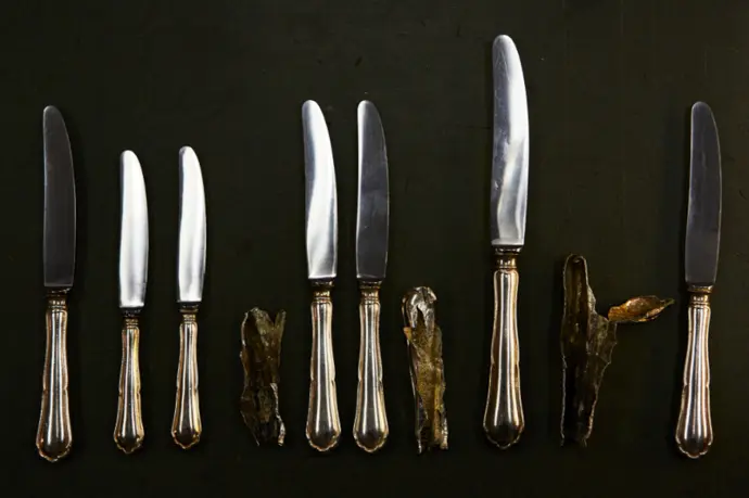 Aus über 160kg Silberbesteck, Dosen, Kannen und Orden und 650kg Familiensilber mit Silberauflage (z.B. 90er und 100er) haben wir ein Konzentrat erschmolzen, in dem sämtliche Silberspenden zumindest anteilig enthalten sind. Jenseits des für die Herstellung der Kelche gewonnenen Konzentrats, wird der Erlös aus dem Verkauf des gespendeten Silbers auch zur Deckung der Fertigungskosten verwendet.