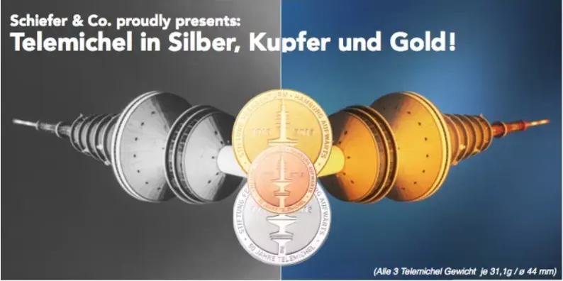Nach einigen Monaten der Vorbereitung erscheinen wir nun, etwas früher als ursprünglich geplant, im Sonderteil des Hamburger Abendblatts, mit einem noch nicht durchweg perfekten, aber schon ziemlich guten Produkt und vor allem in einem spannenden Rampenlicht. Zum Verkaufsstart der Spenden-Medaillen zugunsten der Stiftung Fernsehturm – Hamburg aufwärts! bieten wir für Abonnenten des Hamburger Abendblattes Telemichel in 999/ooo Feinsilber mit 8-stelligen Seriennummern 00.00.1000 bis 00.00.1501 auf der Rückseite zum Treuepreis von je € 99,- in einer Kapsel auf Zertifikat.