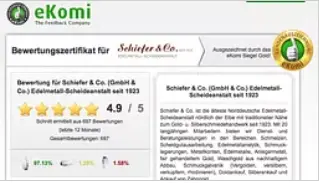 Wir sind auch sonnabends für Sie da: Damit auch am Samstag z.B. Zahngold geschmolzen, fair gewichtet und korrekt bewertet werden kann. Damit wir auch am Samstag nach Direktschmelze und X-ray Prüfung faire Ankaufspreise für nicht mehr tragbaren oder beschädigten Schmuck anbieten können.