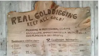 Strenge Wettkampfregel: Alle bekommen die gleiche Anzahl winziger Goldkörner in einem Eimer Sand (gut durchgemischt) und los geht´s! Die Weltmeisterschaft im Goldwaschen wird 2016 im September in Kalifornien ausgetragen, aber auch zu den finnischen Meisterschaften werden schon immerhin 200 professionelle Goldwäscher um die Titel waschen. Jeder kann teilnehmen. Jeder ist willkommen als Zuschauer. Jeder kann hier sein Glück machen.