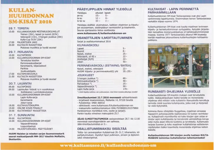 In diesem Jahr finden die Finnischen Goldwasch-Meisterschaften vom 29. bis 31. Juli 2016 statt. Austragungsort ist wieder Tankavaara, ungefähr 300 km nördlich des Polarkreises.