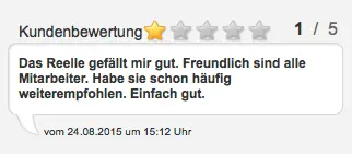 Wir haben fast nur sehr positive Bewertungen erhalten, aber wir zeigen hier ein paar unserer „schlechtesten“ online-Bewertungen ( eKomi-1-Stern = mangelhaft) von echten Kunden über die eKomi-Bewertungs-App.