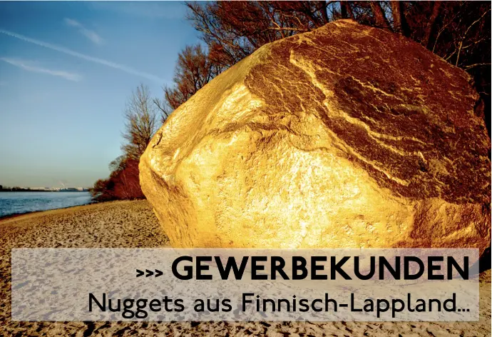 Wir engagieren uns lokal in Finnland in der Nähe der Goldfelder – in Zusammenarbeit mit einer europäisch geförderten Projektgruppe – für die lappische Goldgräberkultur und im eigenen Land für eine Wertschätzung der großartigen Qualität des gefundenen Rohstoffs. Finnland ist der vielleicht einzige Ort in Europa, wo Gold ohne nennenswert negativen ökologischen Fußabdruck abgebaut wird. In den ersten 3 Jahren haben wir schon sehr erfolgreich die uns angebotenen überschaubaren Mengen Waschgold an interessierte Kunden verkauft und ab dieser Saison (Juni bis September) dürfen wir mit größeren Mengen rechnen. Wir nehmen für die nächsten Mengen Reservierungen entgegen und freuen uns, wenn wir auch Sie von dem Rohstoff SUOMI GOLD begeistern dürfen. Lesen Sie mehr oder fragen Sie uns!