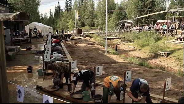 Strenge Wettkampfregel: Alle bekommen die gleiche Anzahl winziger Goldkörner in einem Eimer Sand (gut durchgemischt) und los geht’s! Die Weltmeisterschaft im Goldwaschen wird 2016 im September in Kalifornien ausgetragen, aber auch zu den finnischen Meisterschaften werden schon immerhin 200 professionelle Goldwäscher um die Titel waschen. Jeder kann teilnehmen. Jeder ist willkommen als Zuschauer. Jeder kann hier sein Glück machen. Das gefundene Gold darf behalten werden!