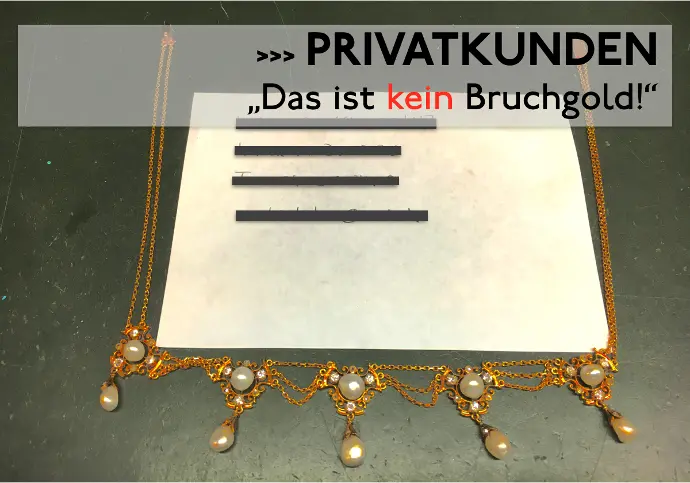 Traditionell sind wir gewerbliche Dienstleister für Goldschmiedinnen und Goldschmiede. Wir stehen aber auch im Ruf, vertrauensvolle Anlaufstelle für Privatkunden zu sein, die Barren kaufen, Edelmetalle verkaufen oder Beratung erfahren möchten. Diesem Ruf fühlen wir uns seit 101 Jahren verpflichtet. Wir beraten auch fernmündlich und nehmen Ankaufsgut per UPS und versicherter Post entgegen! Herzlich willkommen im Bereich für Privatkunden.