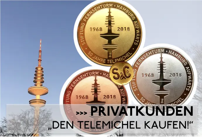 Die Telemichel-Medaillen machen wir für die Stiftung Fernsehturm-Hamburg aufwärts! und vor allem um Geld einsammeln zu helfen für die Stiftung und den Stiftungszweck.