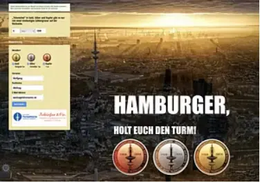 Nach einigen Monaten der Vorbereitung erscheinen wir nun, etwas früher als ursprünglich geplant, im Sonderteil des Hamburger Abendblatts, mit einem noch nicht durchweg perfekten, aber schon ziemlich guten Produkt und vor allem in einem spannenden Rampenlicht. Zum Verkaufsstart der Spenden-Medaillen zugunsten der Stiftung Fernsehturm – Hamburg aufwärts! bieten wir für Abonnenten des Hamburger Abendblattes Telemichel in 999/ooo Feinsilber mit 8-stelligen Seriennummern 00.00.1000 bis 00.00.1501 auf der Rückseite zum Treuepreis von je € 99,- in einer Kapsel auf Zertifikat.